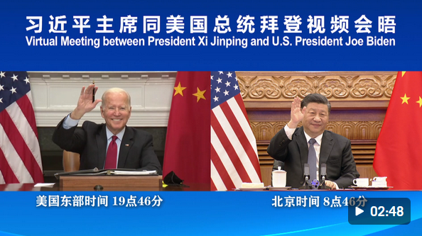 国家主席习近平16日上午在北京同美国总统拜登举行视频会晤。