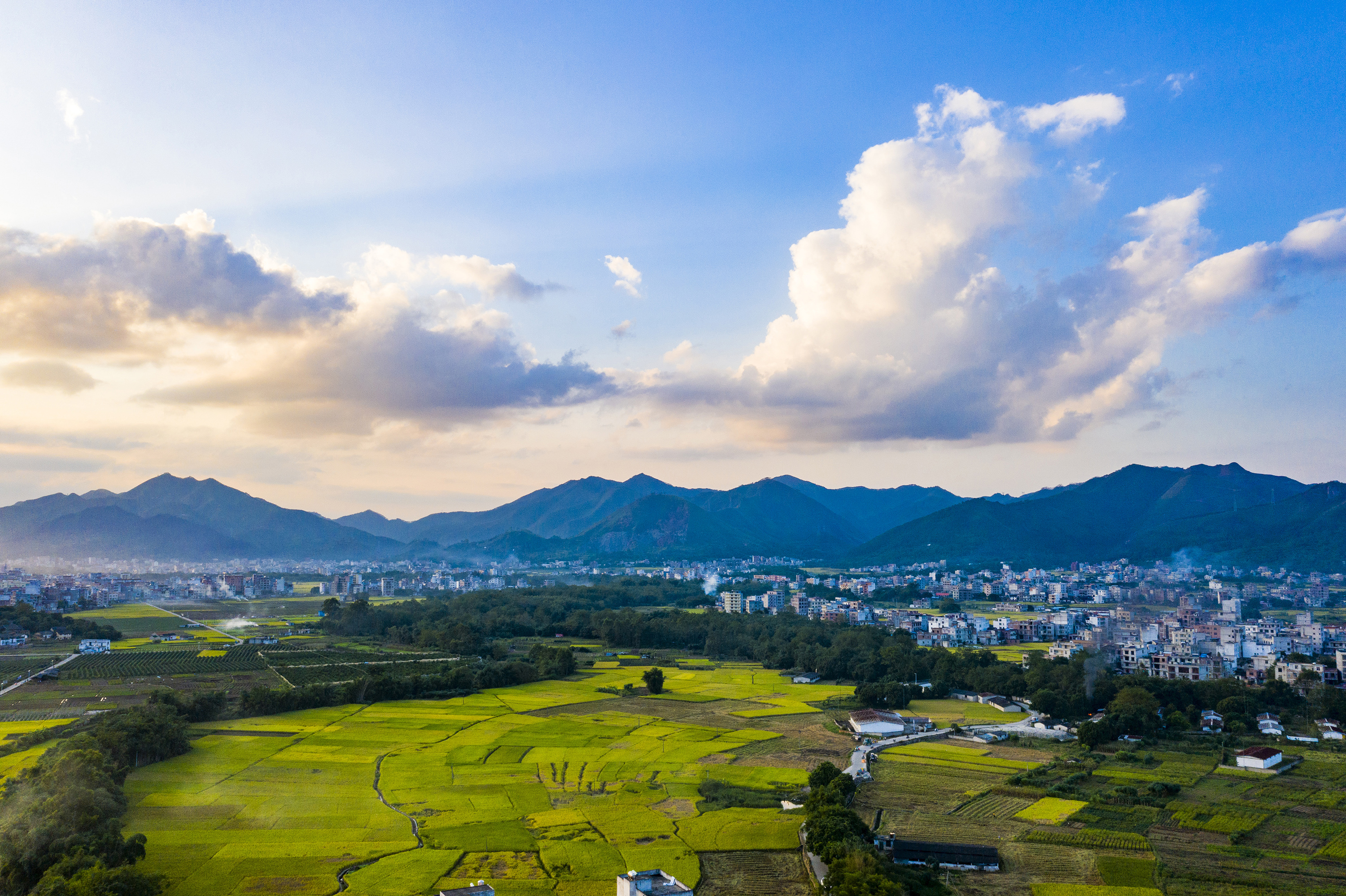 △2021年11月6日,广西梧州岑溪市归义镇,民居、田园与绿水青山相映成趣,构成一幅美丽乡村画卷。