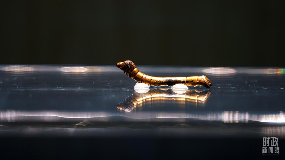 △中国陕西历史博物馆珍藏的千年“鎏金铜蚕”。习近平总书记曾在2017年“一带一路”国际合作高峰论坛开幕式上提到,“鎏金铜蚕”见证了古人开辟陆上丝绸之路的历史。(图/视觉中国)