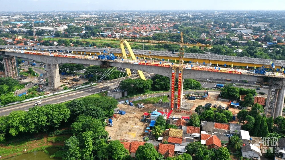 △连接印尼首都雅加达和万隆的雅万高铁,是中国高铁首次全系统、全要素、全生产链在海外落地。这是架梁现场。(图/视觉中国)