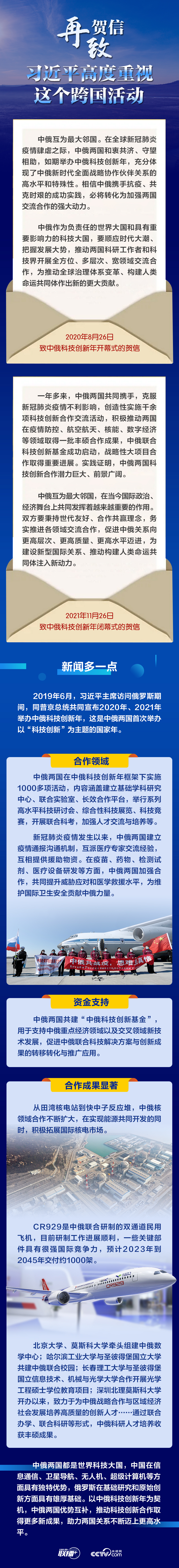 联播+11月26日,习近平主席向中俄科技创新年闭幕式致贺信,赞许一年多来两国在疫情防控、航空航天、核能、数字经济等领域取得的合作成果。