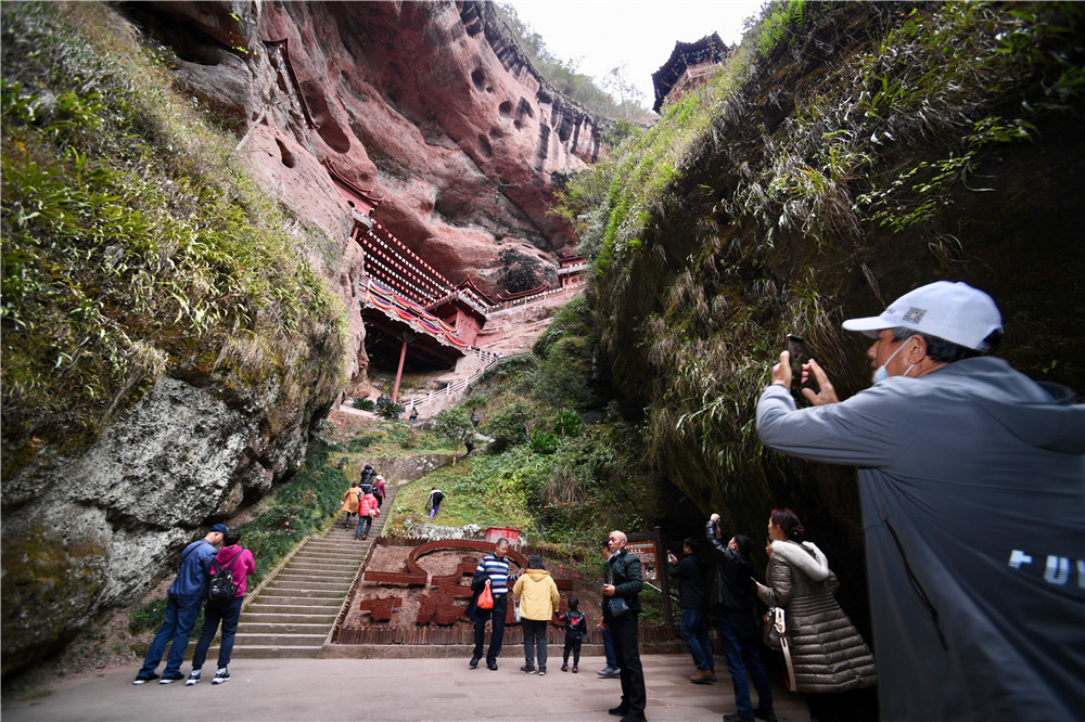 2020年12月9日,游客在福建省三明市泰宁县大金湖景区甘露寺参观。新华社记者 姜克红 摄