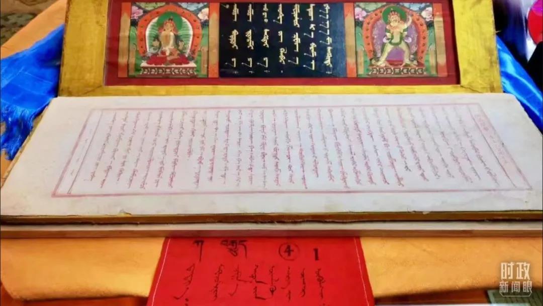 △《甘珠尔经》是研究佛学、哲学、语言、民族文化交流等方面的重要文献,被称为蒙古文的百科全书。目前内蒙古大学图书馆珍藏的版本,是世界上最完整的版本。(总台央视记者张晓鹏拍摄)