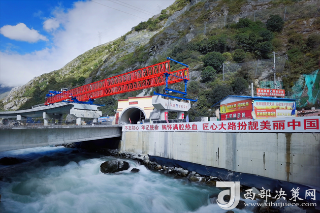 西部决策网讯11月29日,国道318线康定市过境段公路工程起点互通立交连接线最后一片T梁平缓地躺在康定河水面。至此,中铁一局四公司国道318项目所有预制梁全部架设完毕。