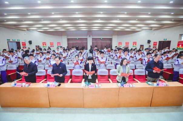12月3日上午,山东省实验中学报告厅,百余名师生与嘉宾手持《中华人民共和国宪法》,以网络视频直播形式与百万学子相聚线上“云课堂”,齐诵宪法。