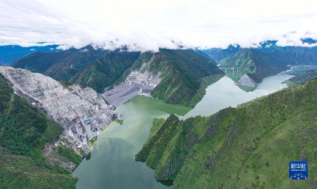 这是雅砻江两河口水电站一角,两河口水电站是国家和四川省重点工程、西部大开发优化能源供给侧结构性调整的战略工程(7月15日摄,无人机照片)。新华社发