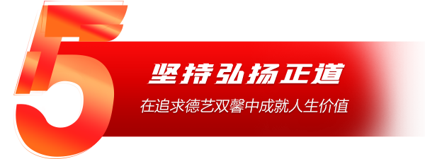 ●要把个人的道德修养、社会形象与作品的社会效果统一起来,坚守艺术理想,追求德艺双馨,努力以高尚的操守和文质兼美的作品,为历史存正气、为世人弘美德、为自身留清名。
