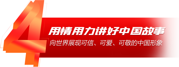 ●要立足中国大地,讲好中国故事,塑造更多为世界所认知的中华文化形象,努力展示一个生动立体的中国,为推动构建人类命运共同体谱写新篇章。