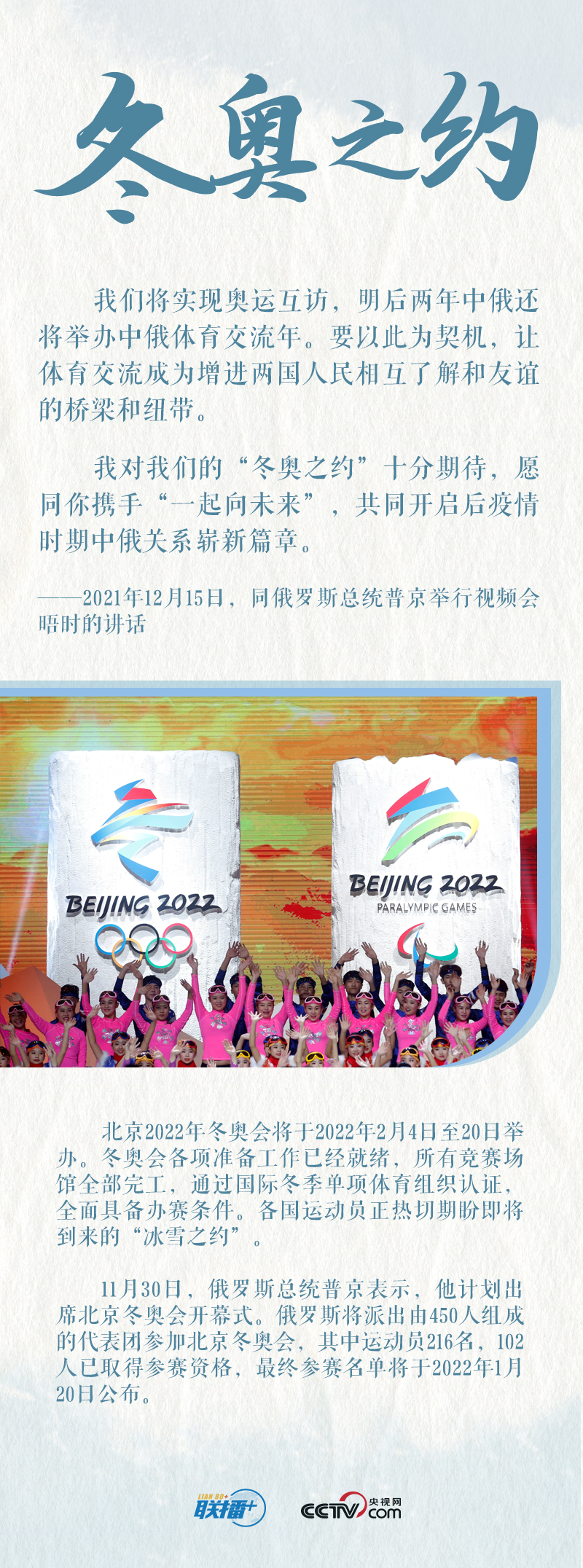 一个多月后,普京总统将访问中国并出席北京冬奥会开幕式,以实际行动支持中国举办冬奥会。