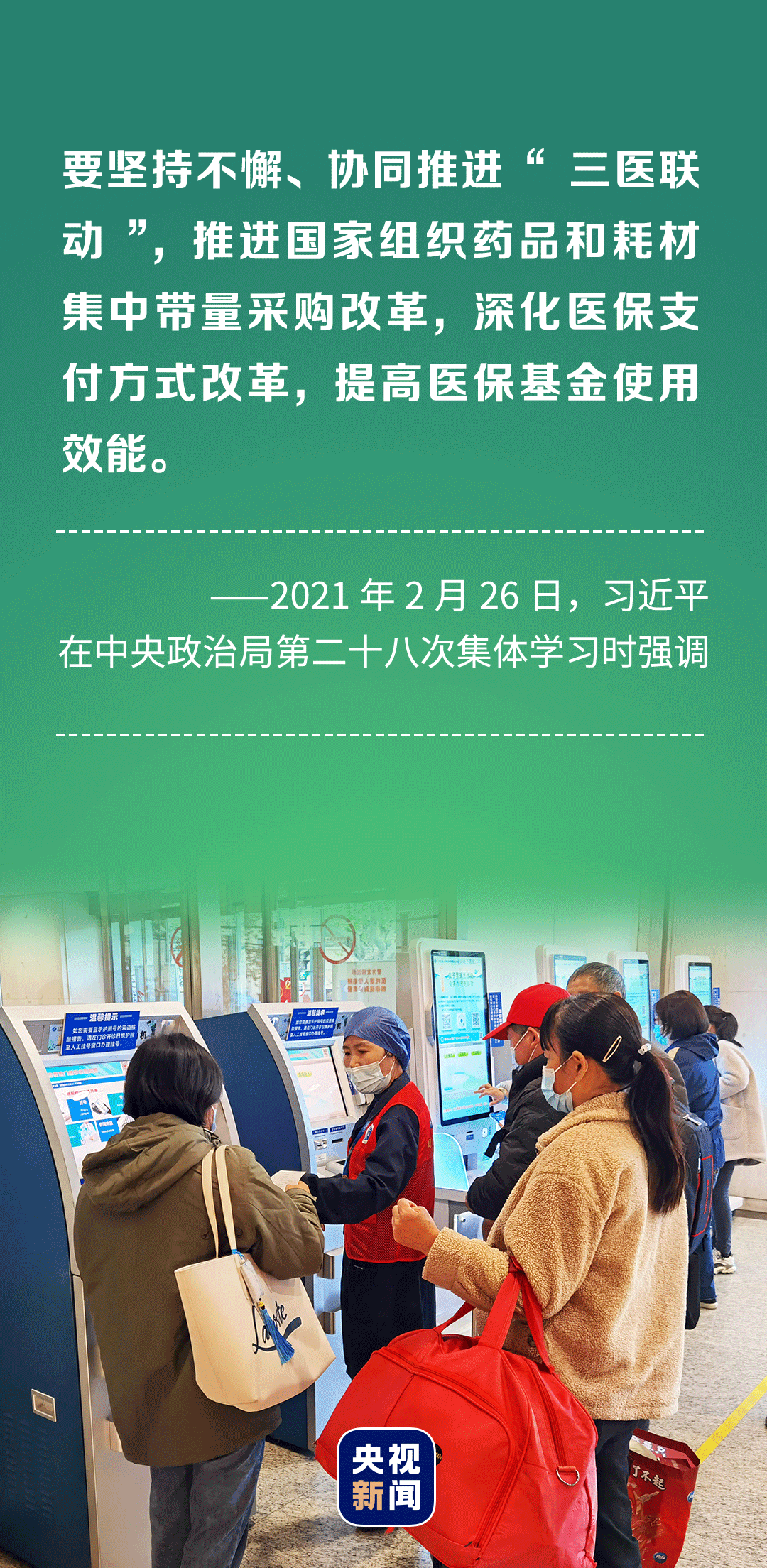 总书记勉励道,“要继续深化医药卫生体制改革,均衡布局优质医疗资源,改善基层基础设施条件,为人民健康提供可靠保障。”