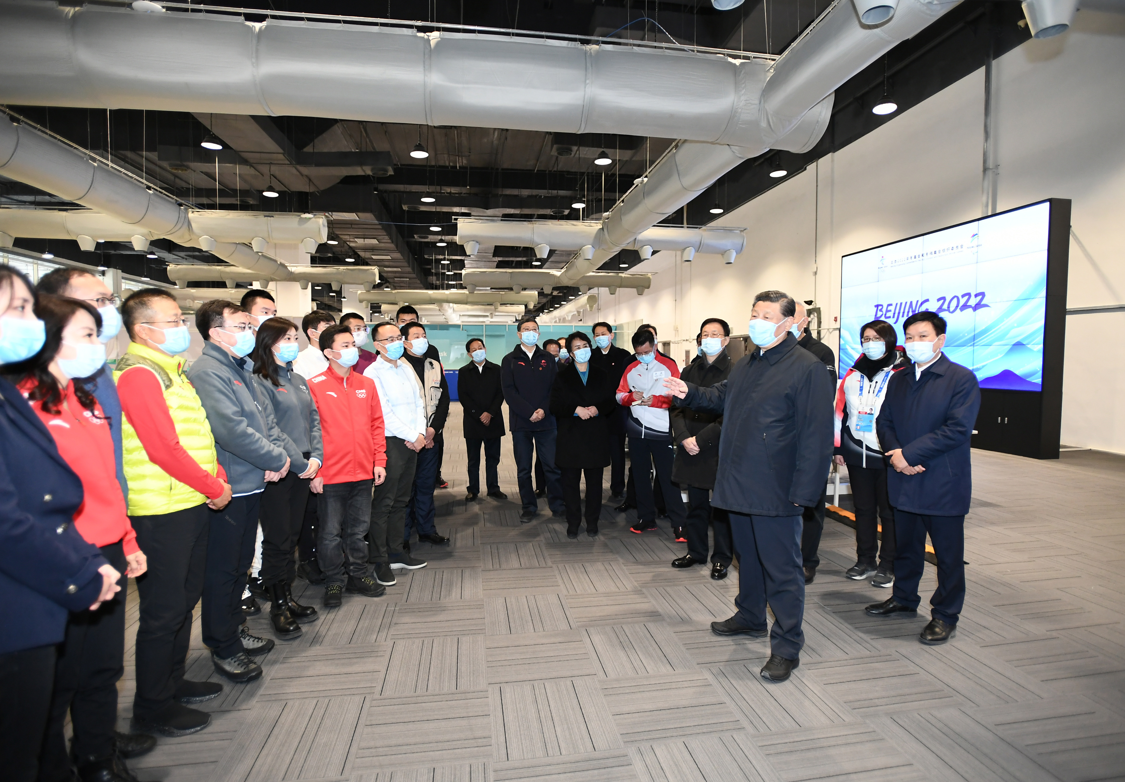 1月4日,中共中央总书记、国家主席、中央军委主席习近平在北京冬奥会、冬残奥会主媒体中心媒体工作间,同正在做准备的国内媒体记者代表亲切交流。新华社记者 谢环驰 摄