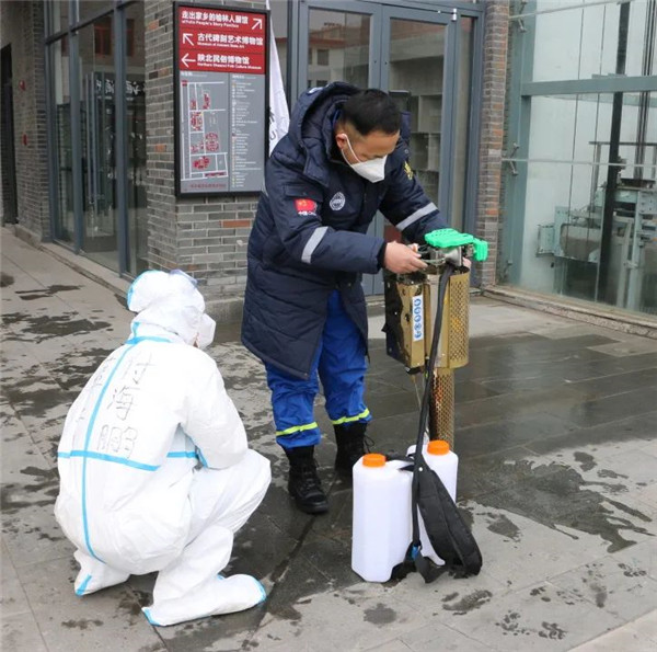 经过3个多小时的防疫消杀,覆盖5.8万平方米的景区主通道,榆林蓝天救援队顺利完成。(供稿:榆林蓝天救援队)