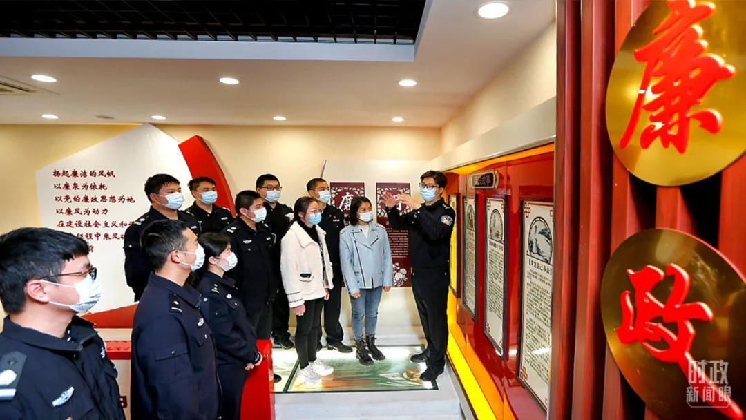 △2021年11月,江苏南京港出入境边防检查站民警参观廉政警示教育展厅。(图/视觉中国)