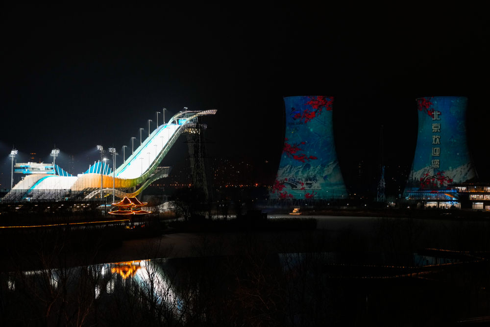 1月20日,位于北京市石景山区首钢园内的首钢滑雪大跳台开启灯光秀。新华社记者 彭子洋 摄