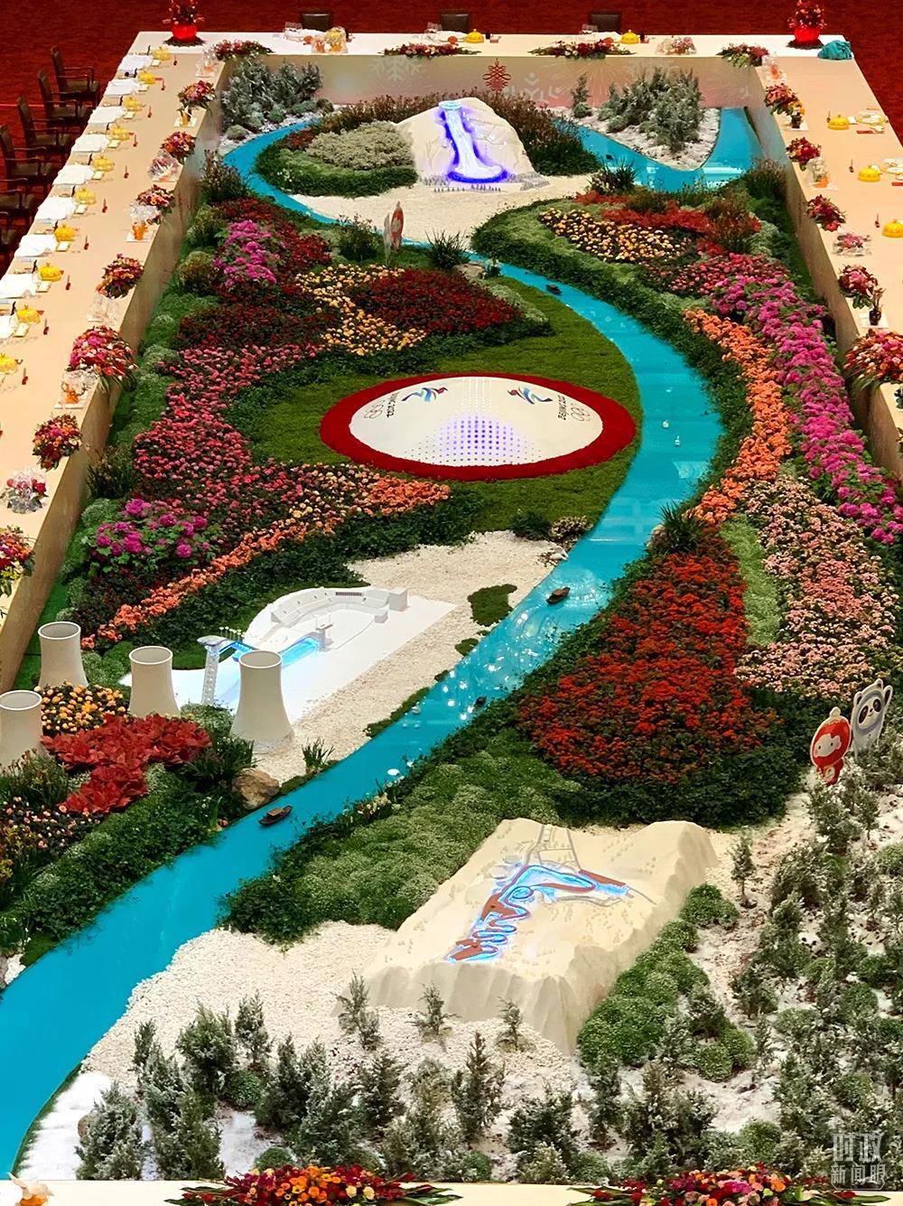 △宴会厅摆放的“春”主题冰雕。(总台央视记者钟锋拍摄)