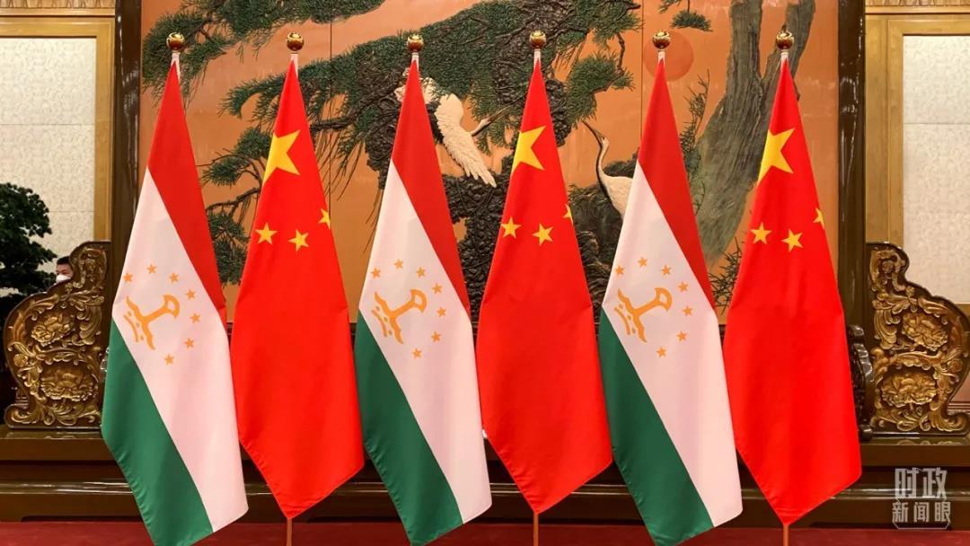 △塔吉克斯坦国旗与五星红旗。(总台央视记者段德文拍摄)