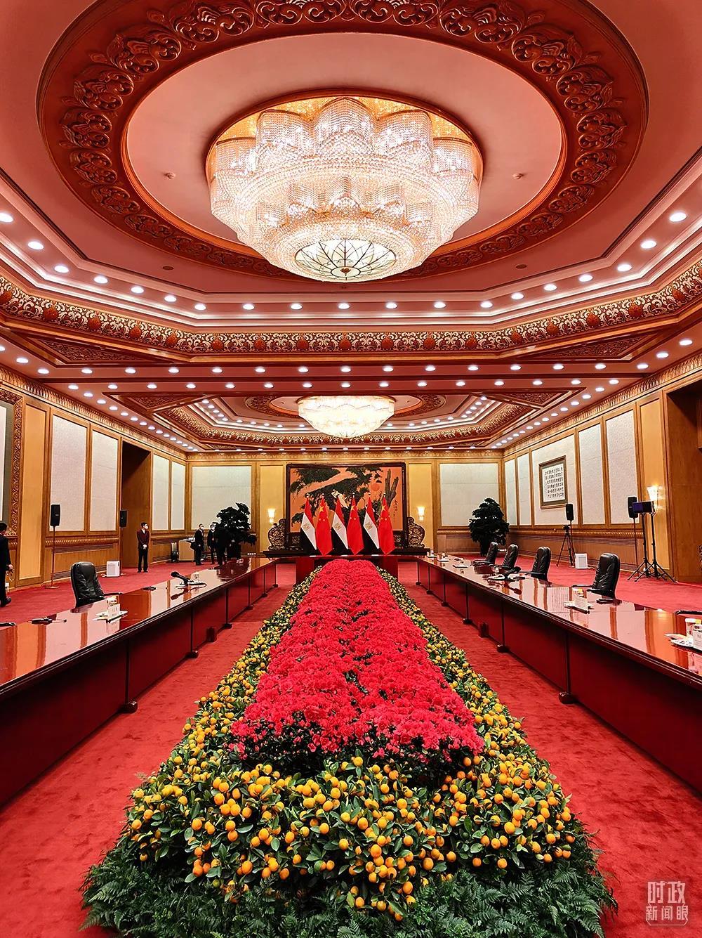 △中国与乌兹别克斯坦两国元首会谈开始前的现场。(总台央视记者段德文拍摄)