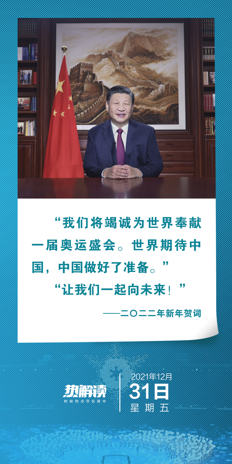 辞旧迎新之际,习近平主席在二〇二二年新年贺词中真诚呼吁全世界携手共创美好未来,同时也为北京2022年冬奥会和冬残奥会的主题口号“一起向未来”注入深刻内涵。