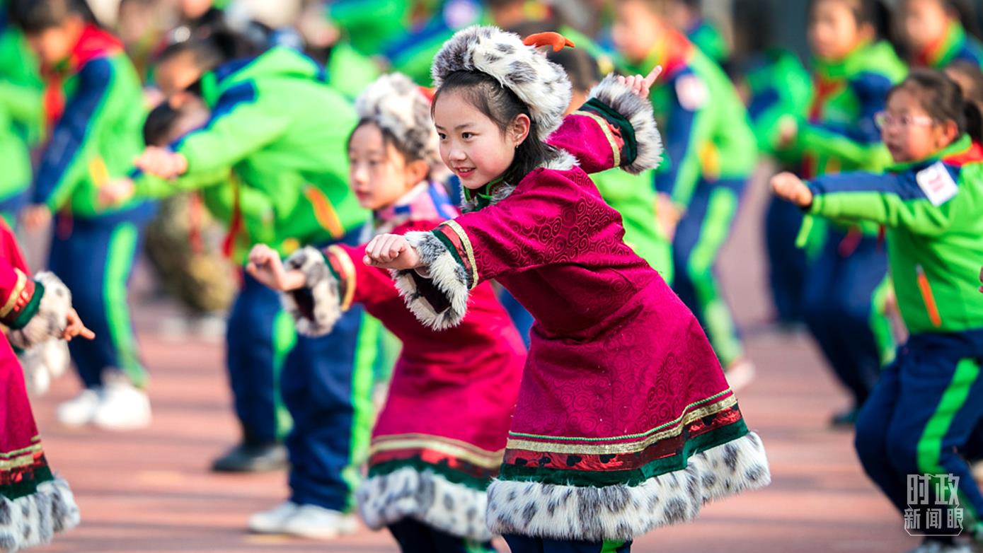 △内蒙古呼和浩特,南茶坊小学编排了一套具有民族特色的课间操。(图/视觉中国)