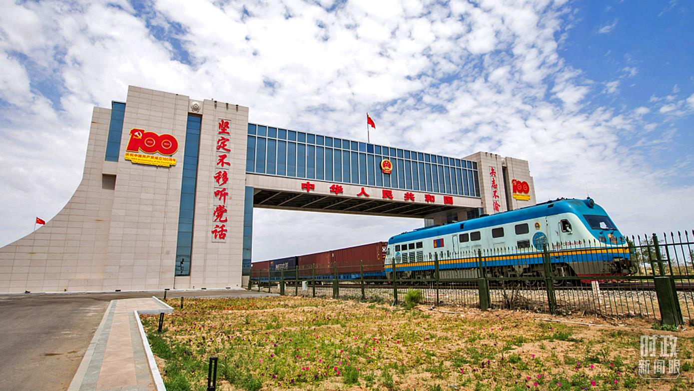 △2021年7月,一列中欧班列驶入二连浩特国门。(图/视觉中国)
