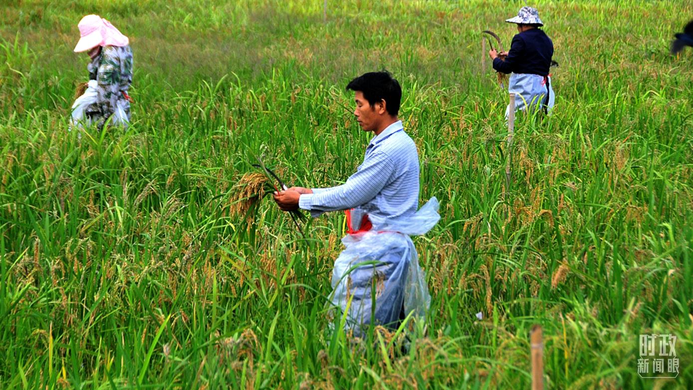 △湖南杂交水稻研究中心海南基地,育种工作者正对成熟的杂交水稻进行抽种。(图/视觉中国)