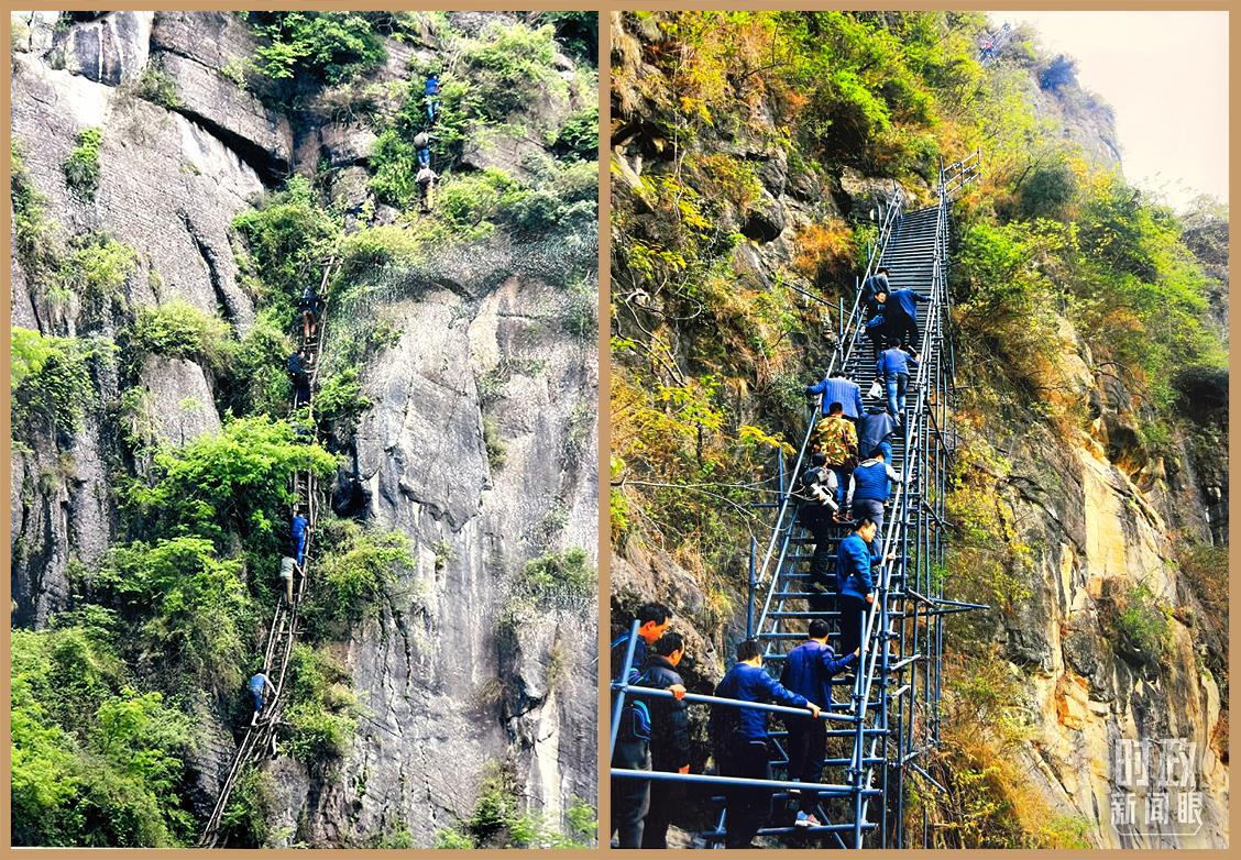 △益西达瓦委员展示的悬崖村对比图。(总台央视记者卢心雨、赵化拍摄)