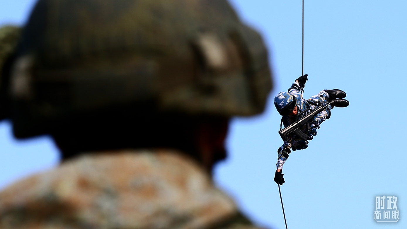 △2016年,广东湛江某训练场,中国陆战队员实施高空滑降。(总台国广记者李晋拍摄)