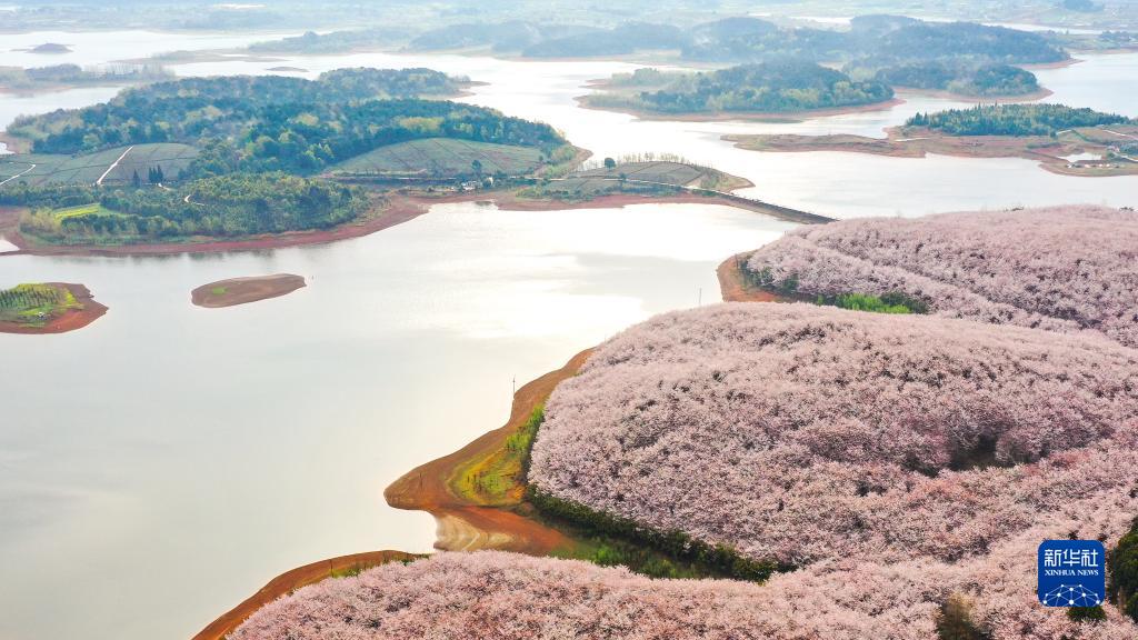近日,贵州省贵安新区樱花园内樱花竞相盛开,吸引不少游客前来观赏。贵安新区樱花园占地面积2.4万余亩,园内种植近70万株樱花。