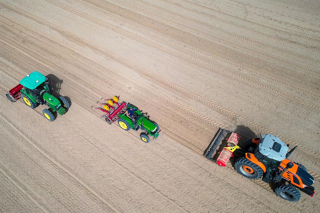 眼下,江西南昌县蒋巷镇大田农社,装满水稻种子的无人机已经升空;河南柘城,农业技术人员远程指导农户做好田间管理工作;宁夏贺兰县隆源村,小麦自动播种机正准备下地……大江南北,春耕渐次展开。