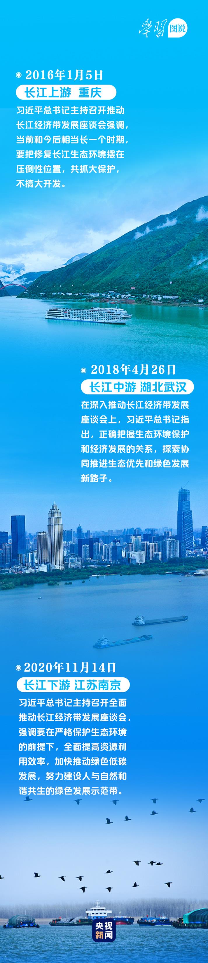 几年来,习近平总书记先后来到长江上游、中游、下游,三次召开座谈会,为长江经济带发展把脉定向。