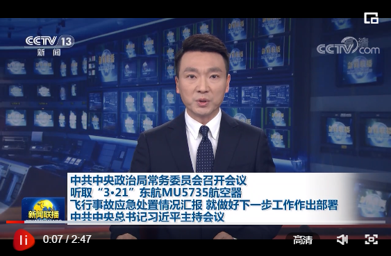 会议指出,“3·21”东航MU5735航空器飞行事故发生后,党中央高度重视,习近平总书记立即作出重要指示,强调要立即启动应急机制,全力组织搜救,妥善处置善后,尽快查明原因,做好遇难者家属安抚和服务工作。各有关方面闻令而动、快速响应,组织民航、应急、公安、军队、卫健和广西等各方面力量,按照“统一指挥、分工负责、深入细致、科学有序”总体要求,全面做好有关工作。目前,善后处置、事故调查等工作正在有序进行。