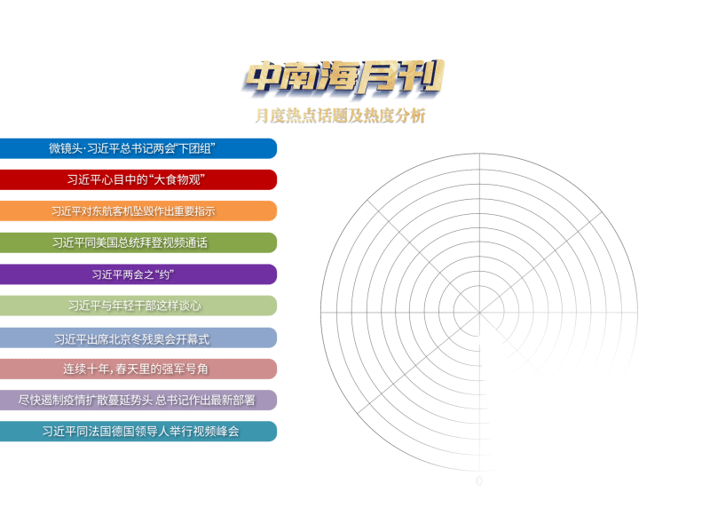 央视网《中南海月刊》运用智能大数据,梳理总书记2022年3月的重要活动与讲话,与您一起感悟总书记的人民情怀,领会总书记向世界传递的中国立场、中国强音。