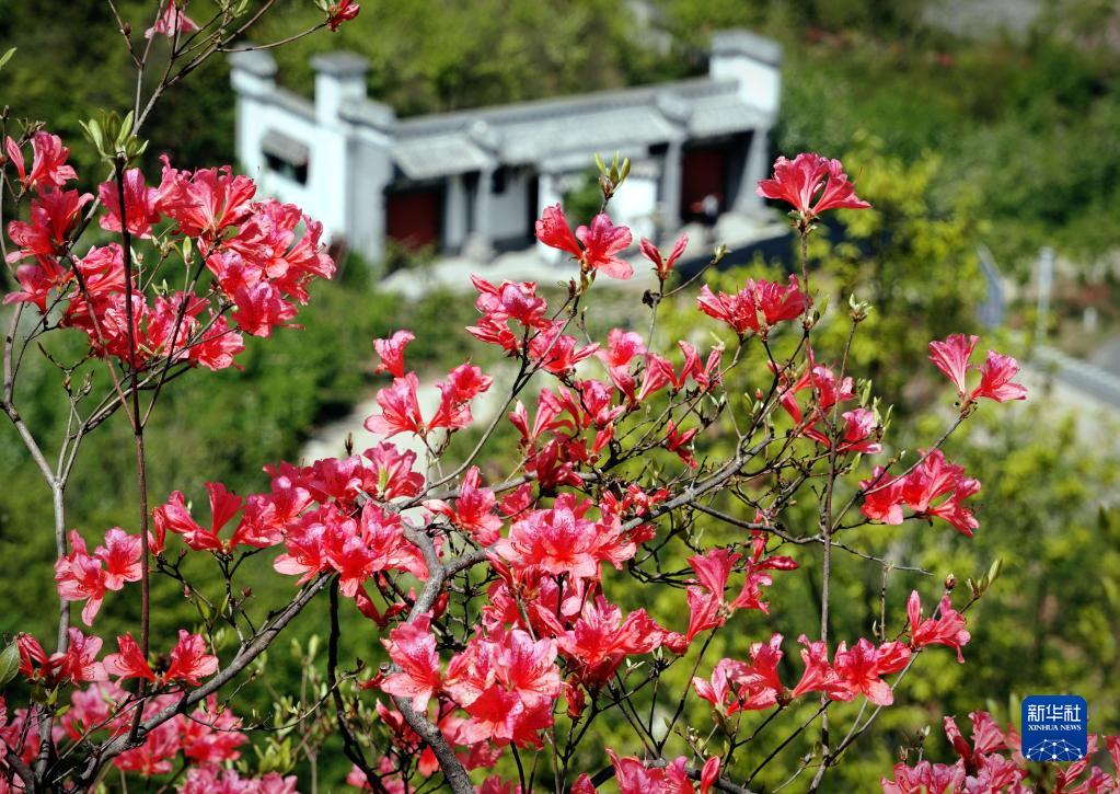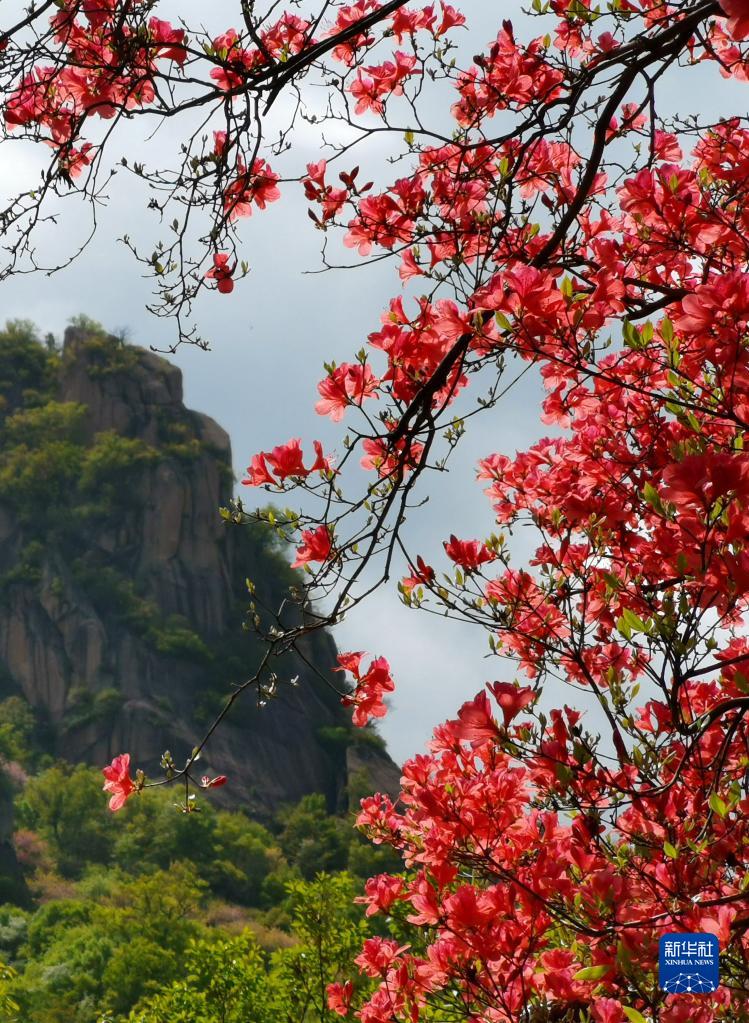 4月20日在河南省汝阳县付店镇西泰山景区内拍摄的盛开的杜鹃花。新华社记者 李安 摄