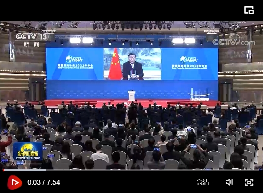 博鳌亚洲论坛2022年年会开幕式21日上午在海南博鳌举行,国家主席习近平以视频方式发表题为《携手迎接挑战,合作开创未来》的主旨演讲。