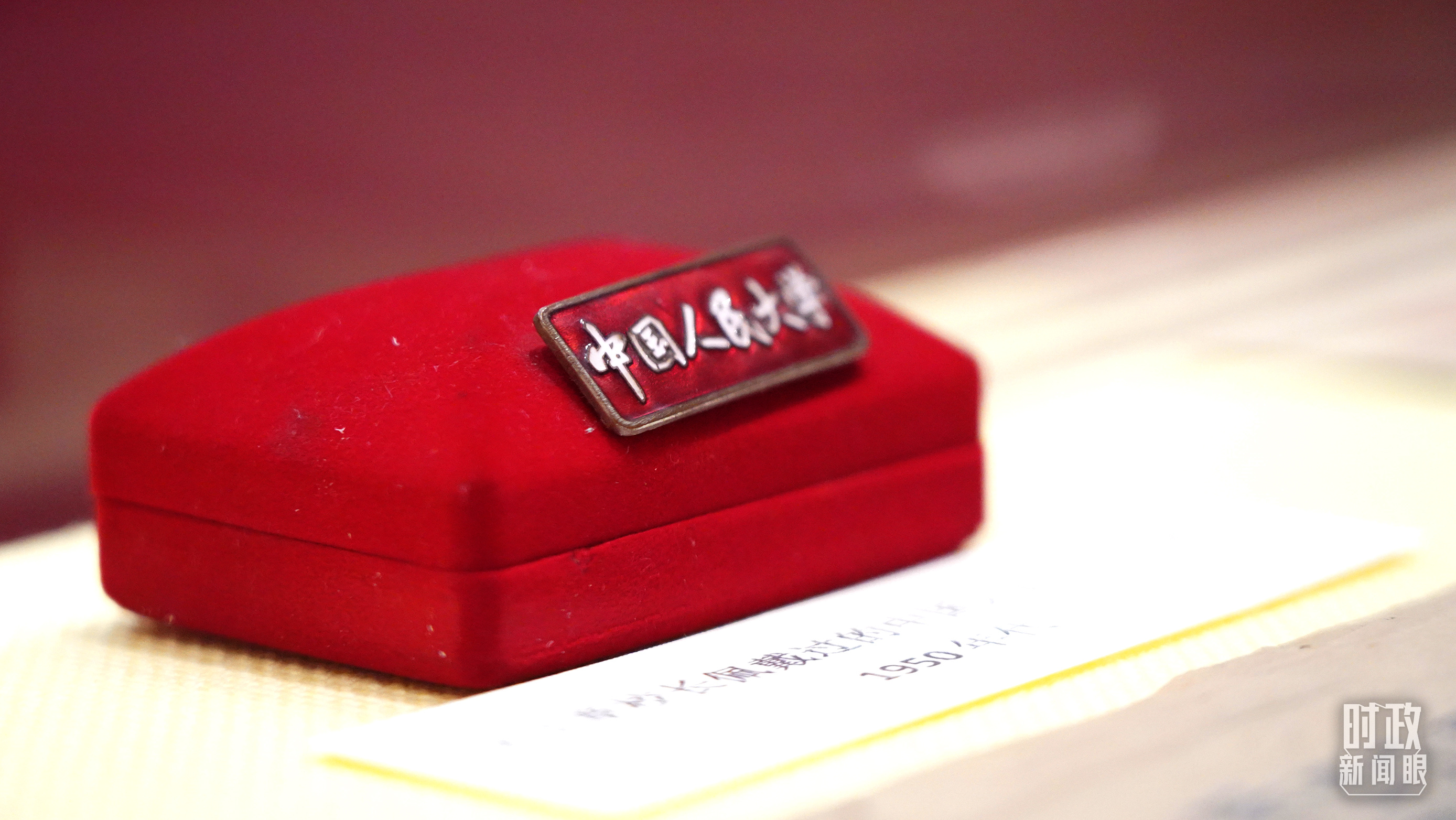 △校史展上,吴玉章校长佩戴过的中国人民大学校徽。(总台央视记者彭汉明拍摄)