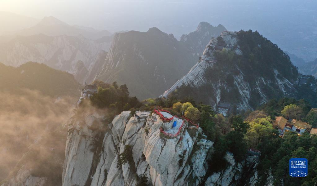 夕阳下的华山南峰(4月28日摄,无人机照片)。新华社记者陶明摄