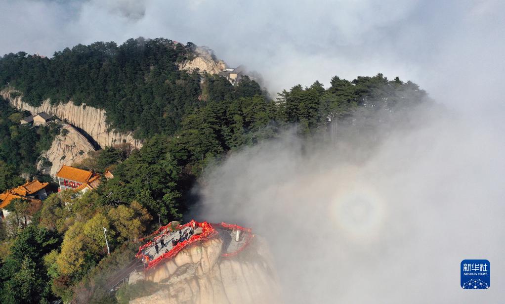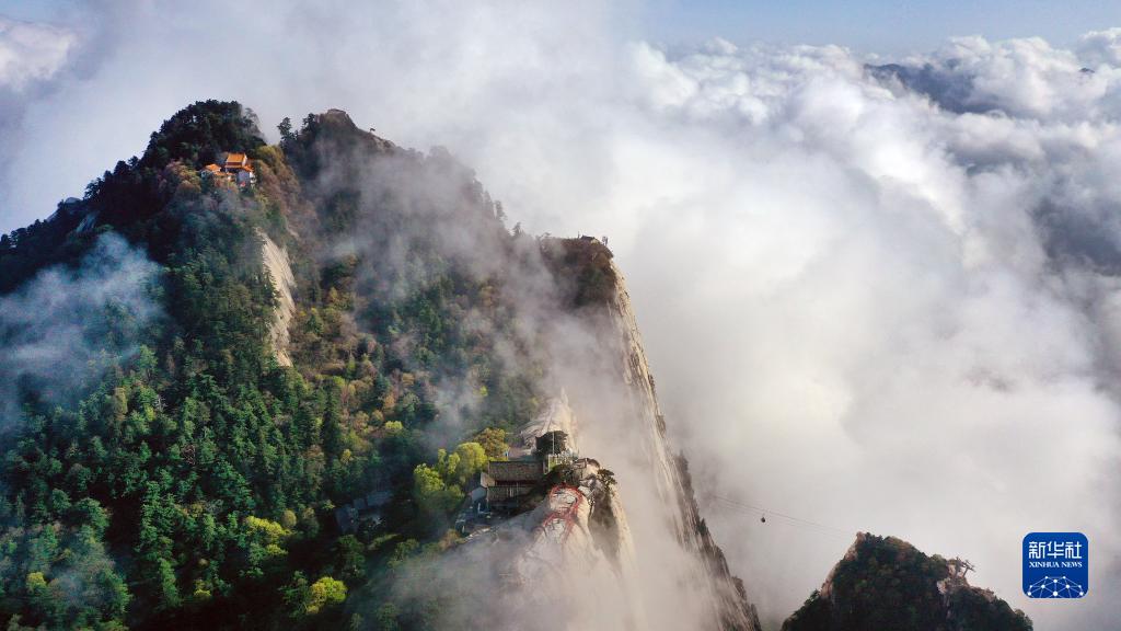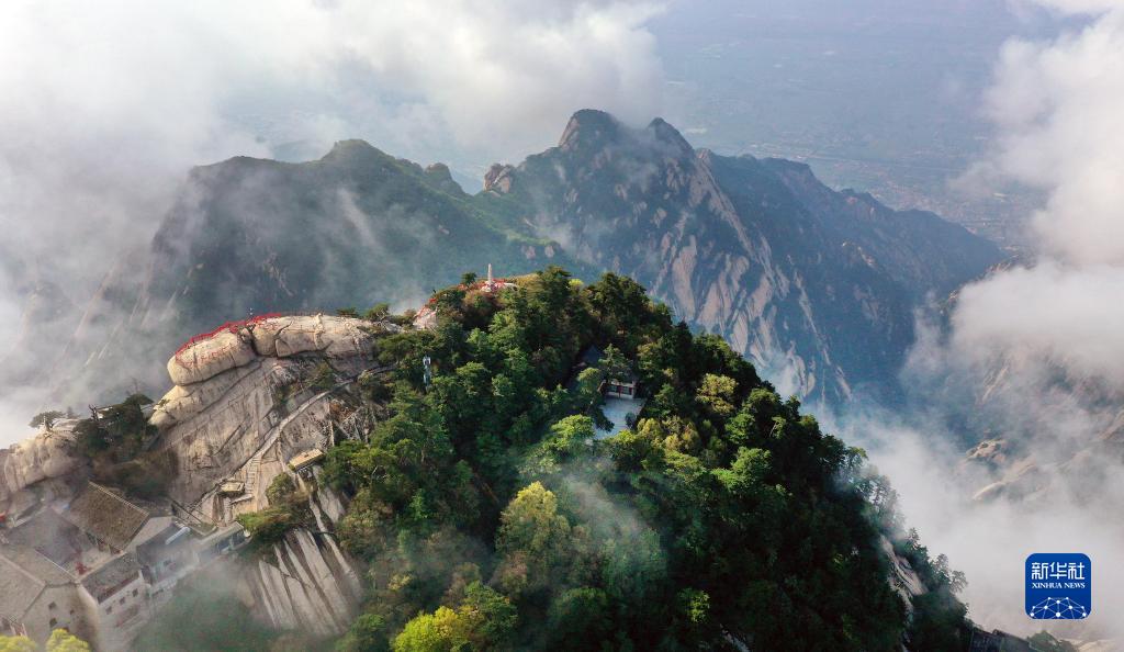 云雾缥缈的华山西峰(4月28日摄,无人机照片)。新华社发(杨瑞卿 摄)