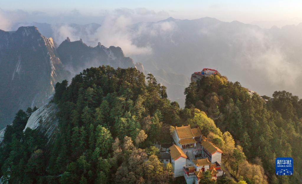 夕阳下的华山(4月28日摄,无人机照片)。新华社记者陶明摄