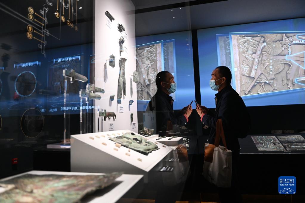 4月28日,游客在陕西考古博物馆内参观。新华社记者 李一博 摄