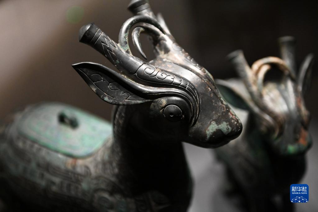 这是陕西考古博物馆展出的宝鸡石鼓山商周墓地出土的牺尊(4月28日摄)。新华社记者 李一博 摄