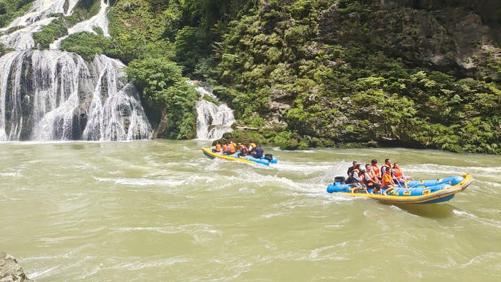 2022年5月3日,游人在湖南张家界茅岩河景区体验漂流。 吴勇兵 摄