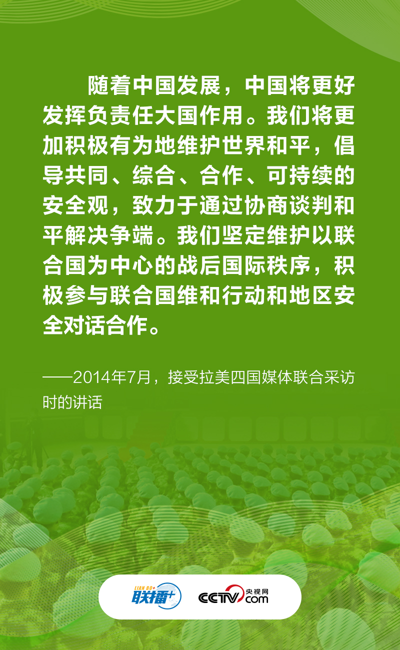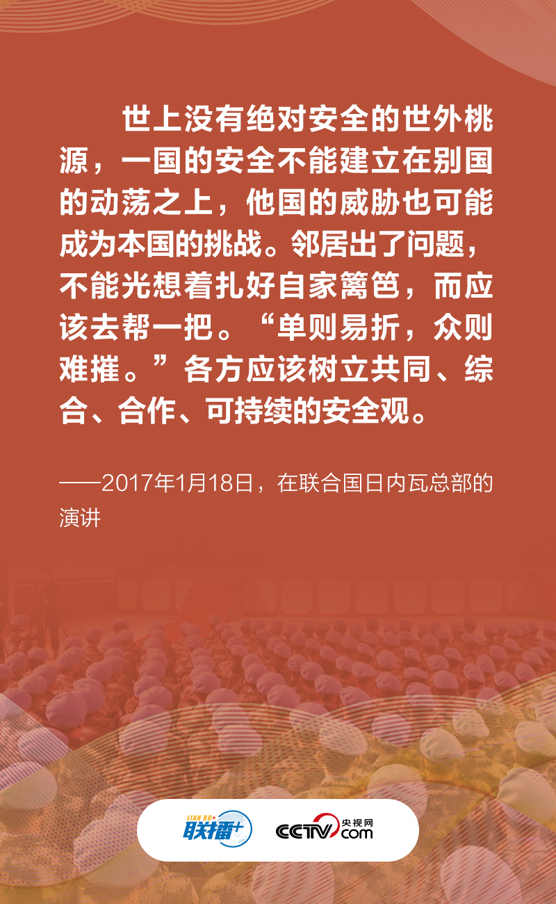 作为负责任的大国,中国一直为维护世界和平、安宁与发展不懈努力。2014年5月21日,为促进亚洲和平发展,习近平主席在亚洲相互协作与信任措施会议第四次峰会上提出践行共同、综合、合作、可持续的亚洲安全观。此后,他在诸多国际场合多次倡导并不断发展“共同、综合、合作、可持续的安全观”,为世界指引一条通往持久和平的康庄大道。央视网《联播+》与您一起学习。