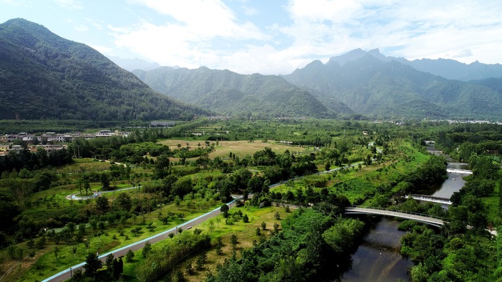 这是陕西省西安市长安区秦岭违建别墅“群贤别业”拆除后建设的秦岭和谐森林公园(2019年7月26日摄,无人机照片)。新华社记者 刘潇 摄