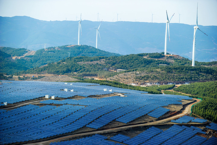 这是贵州省威宁县平箐光伏电站和大海子风电场(2018年3月13日摄)。新华社记者 杨文斌 摄