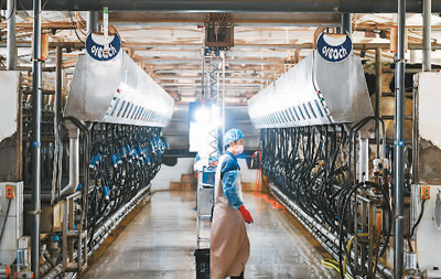 近年来,内蒙古自治区巴彦淖尔市临河区干召庙镇依托当地优势大力发展养牛产业,采取“支部+合作社+基地+农户”的发展模式,带动农户发展养牛产业,促进农户增收致富,助力乡村振兴。图为1月19日,巴彦淖尔市临河区东鑫奶牛养殖专业合作社挤奶车间。贝 赫摄(新华社发)