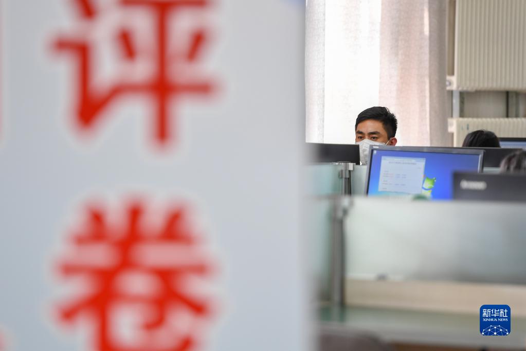 6月14日,在位于吉林长春的东北师范大学高考网上评卷点,工作人员在评卷。据了解,2022年吉林省高考评卷工作全部采用电子扫描、网上评卷方式进行。新华社记者 张楠 摄