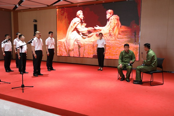 “还我青岛,保卫主权,国家有难,匹夫有责……”机电物资中心组建了20多人的团队,将《建党伟业》中的经典片段搬上了舞台,让台下观众听来无不热血沸腾、慷慨激昂。
