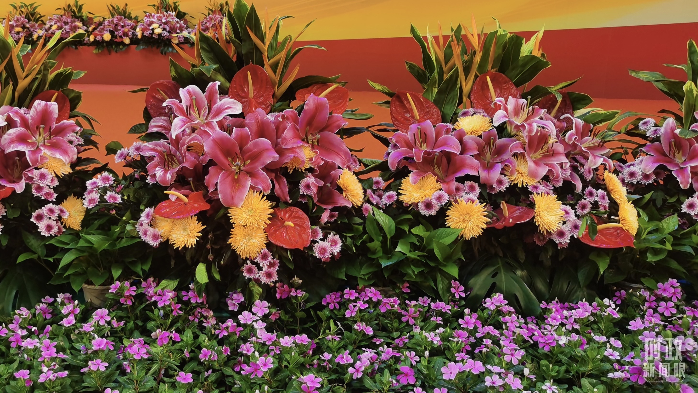 △庆祝大会现场摆放的鲜花。(总台央视记者范凯拍摄)