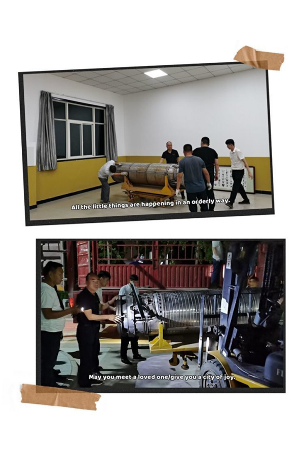 卸完设备已经夜里十一点多,董事长仍坚持在一线指导,废寝忘食,不辞劳苦,看着新进的设备,董事长如获至宝,既欣慰又激动。