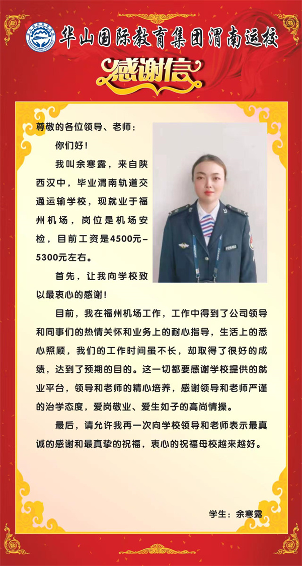 安置到广东国企高速的我校优秀毕业生沈炜,在单位现任管理岗位督导员,年薪10万以上